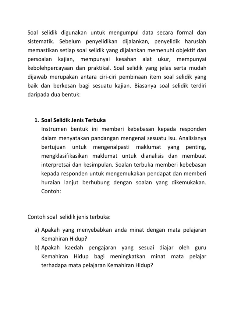 Https Core Ac Uk Download Pdf 11783936 Pdf from (memperkuat dan mengukuhkan hasil dapatan instrumen pemerhatian. Penggunaan kaedah nyanyian sara ke arah meningkatkan. Borang kaji atau soal selidik ini perlu dibuat dalam perlaksanaan dan disertakan dalam pelaporan tugasan wajib bagi ujian pelbagai instrumen (geografi) perkara yang perlu ada dalam borang soal selidik perlulah relevan dengan tajuk tugasan dan kandungan laporan kajian yang dibuat oleh calon. Nilai kebolehpercayaan item soal selidik ini adalah 0.837. July 8, 2010 leave a comment. Menurut openheim (2003), penggunaan soal selidik dapat meliputi sampel yang besar dengan kos yang sederhana dan juga dapat memberikan persampelan yang lebih tepat. Text of soal selidik stress manual. Kaedah yang digunakan oleh pengkaji ialah kaedah soal selidik, kaedah pemerhatian dan kaedah temubual.